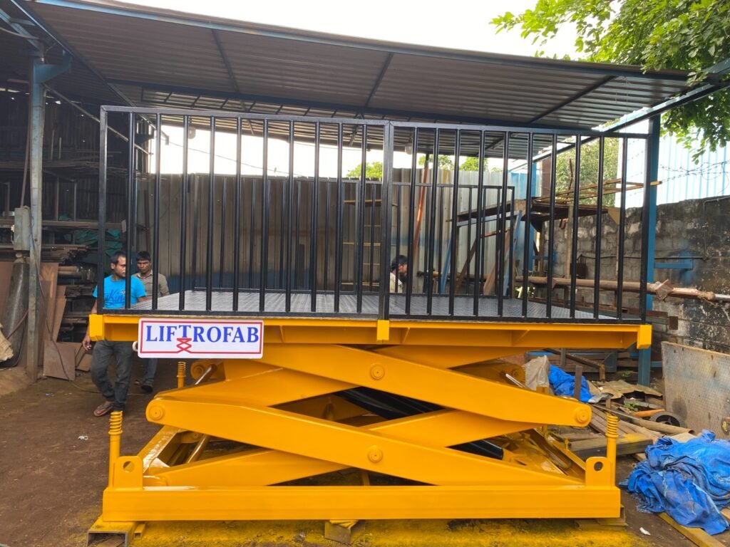 Hydraulic lift built for outdoor environments, efficiently transporting goods between levels with enhanced safety and weather-resistant durability.