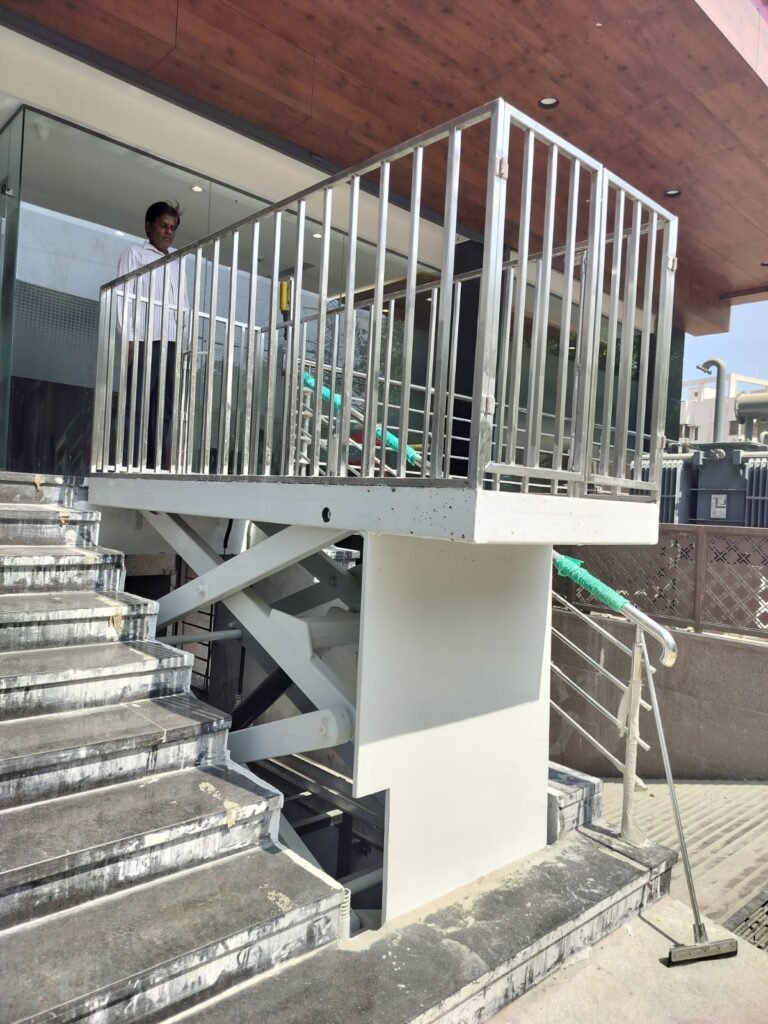LIFTROFAB’s Hydraulic Structure Lift is a robust vertical lifting solution designed to transport goods and personnel between different floors. Built with a structural frame and hydraulic mechanism, this lift offers safe, stable, and efficient vertical movement for industrial, commercial, and warehouse environments.